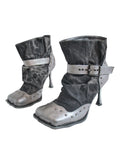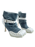 4 toes full grain cow skin and denim ankle boots
